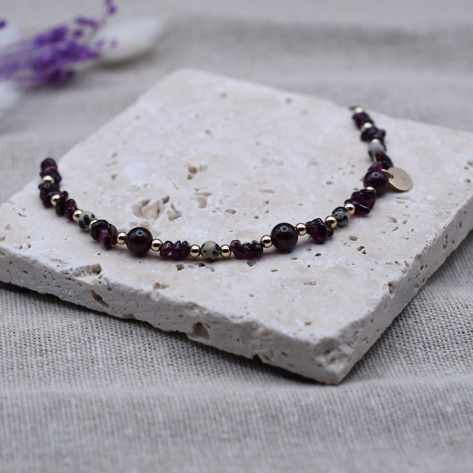 Da jedes Armband aus Natursteinen gefertigt wird und von Hand entsteht, können kleine Unterschiede in Farbe, Maserung oder Steinstruktur auftreten.
